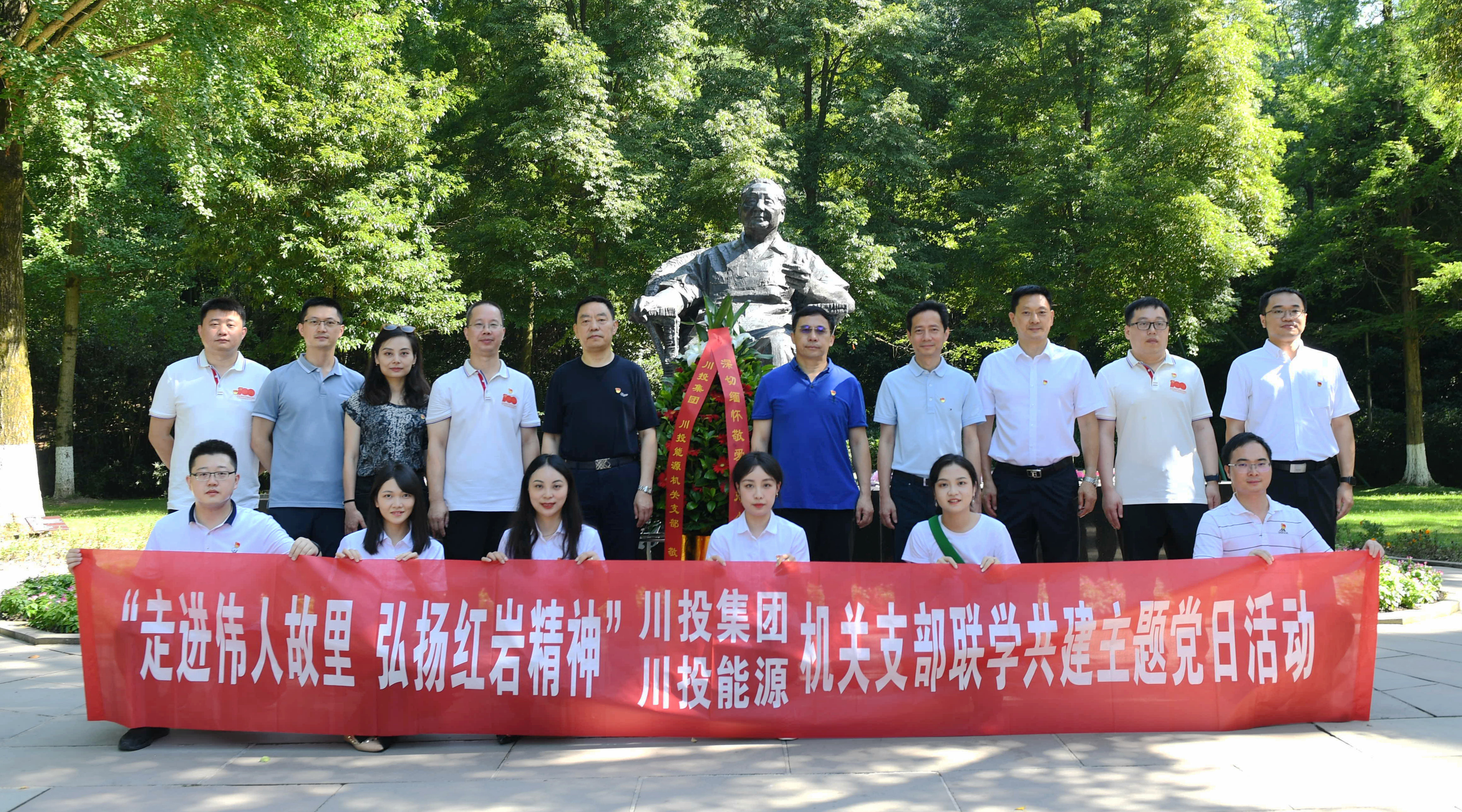 在建黨101周年之際,7月7日至8日,川投集團、川投能源機關支部赴廣安市開展“走進偉人故里,弘揚紅巖精神”聯(lián)學共建主題黨日活動,緬懷偉人豐功偉績,弘揚先輩奮斗精神,繼承紅色優(yōu)良傳統(tǒng)。集團公司黨委副書記、董事鄧凱,黨委委員、副總經(jīng)理王懷林,副總經(jīng)理張昊參加活動。