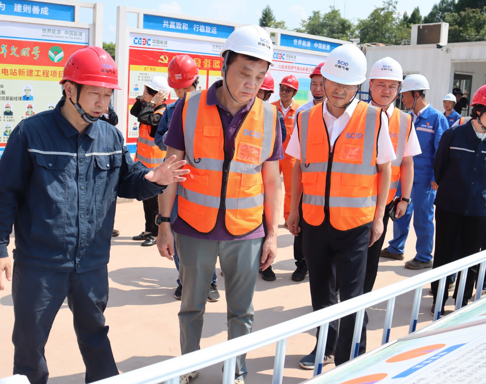 在資陽氣電,劉鴻川一行深入項(xiàng)目施工現(xiàn)場,實(shí)地察看了輔助生產(chǎn)區(qū)和主廠房15米層#1機(jī)組燃機(jī)、汽輪機(jī)、發(fā)電機(jī)設(shè)備基礎(chǔ)施工情況,聽取了資陽氣電項(xiàng)目建設(shè)情況匯報,深入了解項(xiàng)目建設(shè)過程中存在的問題和困難。劉鴻川指出,資陽氣電自去年開工以來,各項(xiàng)工作進(jìn)展順利。當(dāng)前我省正全面推進(jìn)現(xiàn)代化建設(shè),資陽氣電要以項(xiàng)目建設(shè)攻堅年為抓手,按集團(tuán)半年經(jīng)濟(jì)工作會要求,緊密結(jié)合集團(tuán)“四增長三提升一推進(jìn)一合理”年度目標(biāo),勇于擔(dān)當(dāng),全力推動項(xiàng)目建設(shè),努力打造“精品工程、標(biāo)桿工程、示范工程、平安工程、人才工程、廉潔工程”、務(wù)必確保項(xiàng)目安全可靠建成。