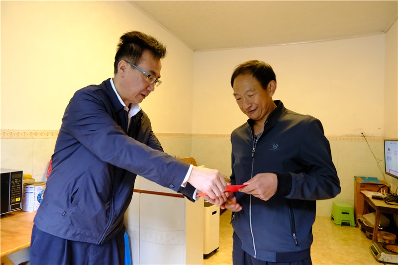 吳曉曦一行來到曙光村脫貧監(jiān)測(cè)戶彭永林家中走訪慰問,關(guān)心了解生產(chǎn)生活及收入情況,并送上慰問物資及慰問金。彭永林2020年因患肺心病,喪失勞動(dòng)力,失去收入來源,2022年村上將其納入脫貧監(jiān)測(cè)戶序列?!按ㄍ都瘓F(tuán)開發(fā)的生態(tài)公益崗位兜底,加上低保金,他每月有近1000元的收入,治病和過日子都沒問題,穩(wěn)住了防止返貧底線。”村干部說道。