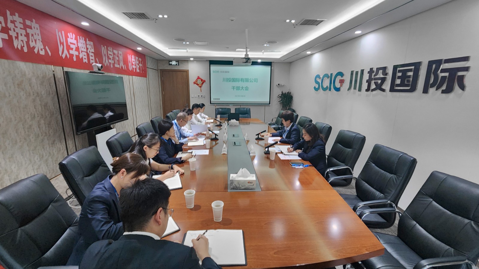 10月8日,集團(tuán)公司副總經(jīng)理鄭世紅出席川投國際干部大會。川投國際黨支部書記、董事長廖彬主持會議。