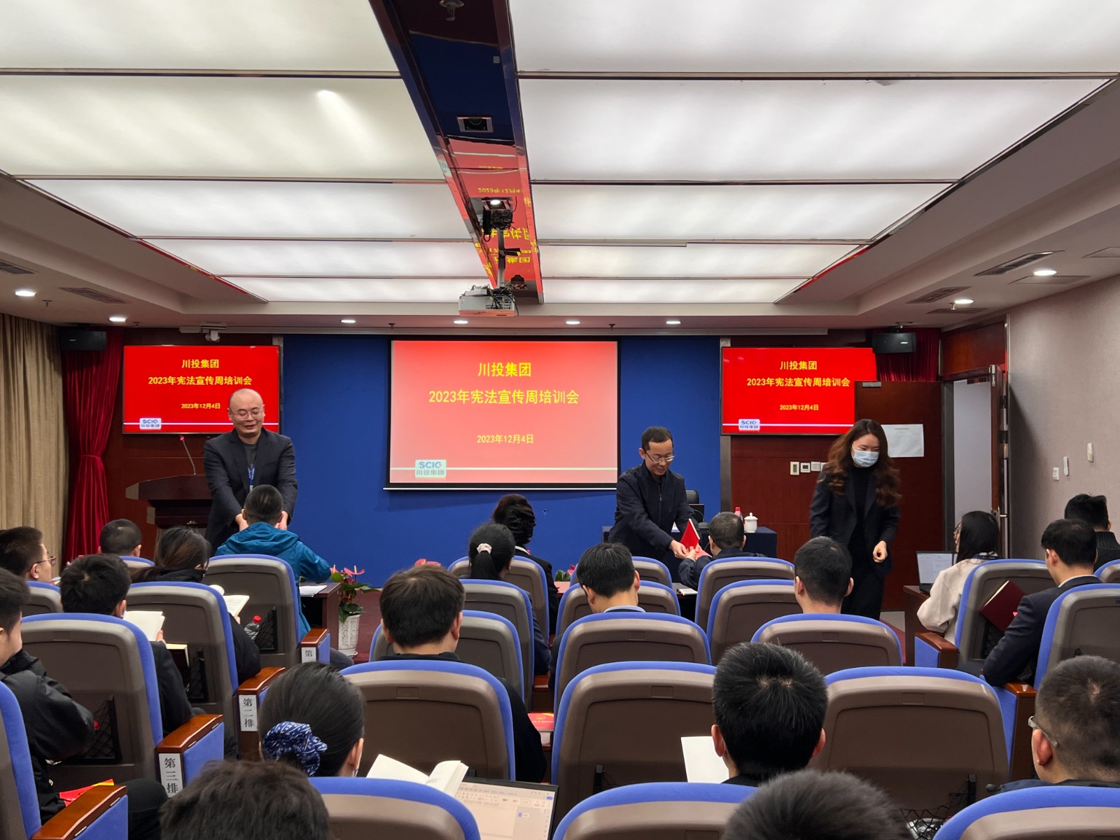 憲法日前后,集團(tuán)公司號(hào)召集團(tuán)本部及所屬公司人員為2023年度“四川十大法治人物”國(guó)資系統(tǒng)推薦人員投票,并學(xué)習(xí)其先進(jìn)事跡。12月4日,集團(tuán)公司組織本部及所屬公司20余人,參加四川省“憲法宣傳周”主題活動(dòng),集團(tuán)公司1名法務(wù)人員受聘擔(dān)任四川省行政執(zhí)法特邀監(jiān)督員;組織開(kāi)展憲法知識(shí)專(zhuān)題講座,近三年新入職員工、集團(tuán)及所屬公司法務(wù)合規(guī)部門(mén)同仁、合規(guī)管理員等約60人參訓(xùn),強(qiáng)化了參訓(xùn)人員尊崇憲法、學(xué)習(xí)憲法、維護(hù)憲法、運(yùn)用憲法的意識(shí)。同時(shí),向參訓(xùn)人員發(fā)放《憲法》讀本,并組織員工收看省委依法治省辦舉辦的“憲法宣傳周”主題活動(dòng)直播,提升法治素養(yǎng),增強(qiáng)法治觀念。近期還充分利用宣傳展板及“網(wǎng)、端、微、屏”等多種形式,廣泛開(kāi)展憲法知識(shí)宣傳,并在“川投集團(tuán)法治建設(shè)”微信平臺(tái)進(jìn)行分享交流,形成了良好的“普法、學(xué)法、用法”氛圍。