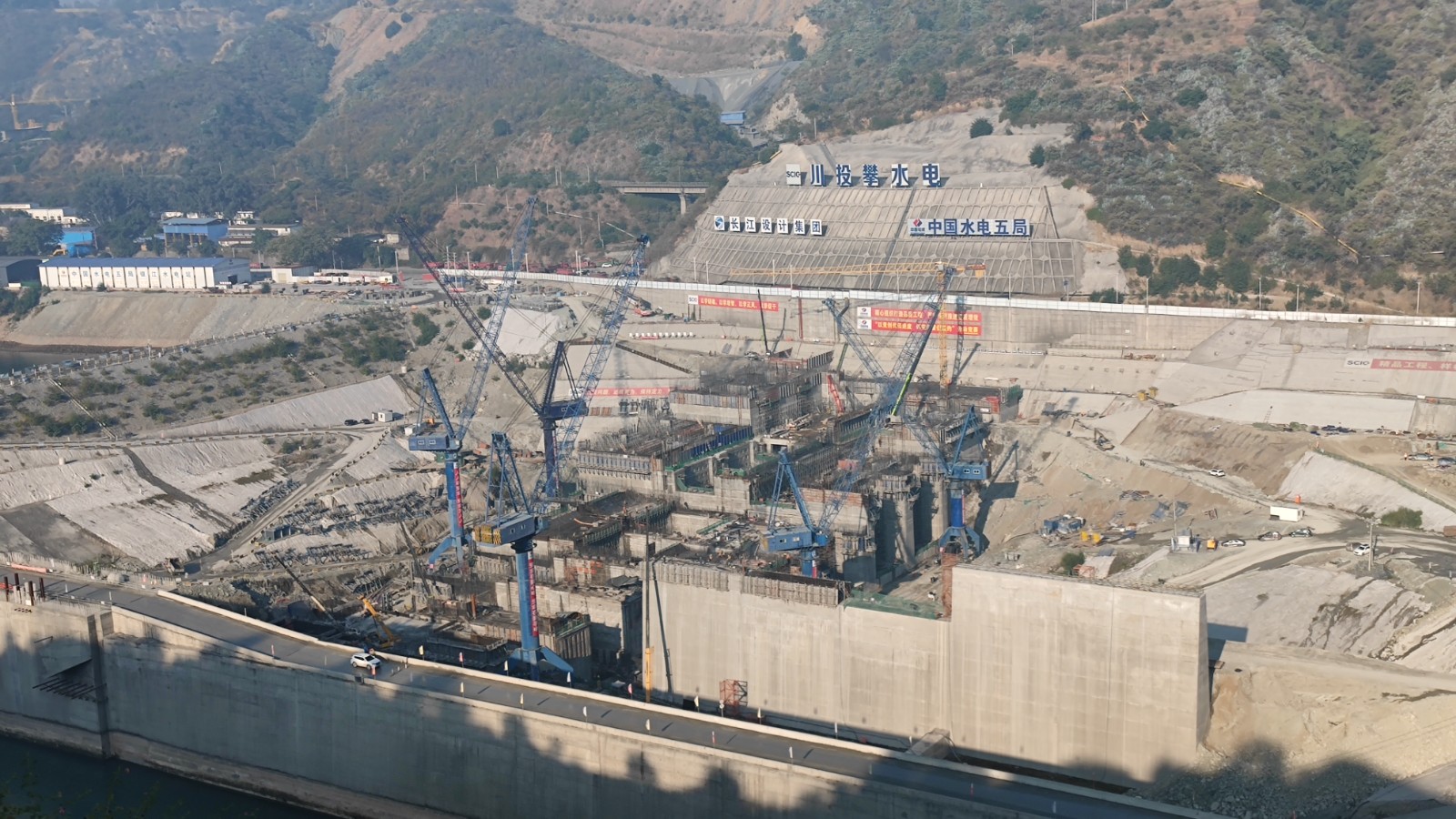 工程自開工以來,30余家參建單位、百余名黨員、數(shù)千名一線工人勠力同心,連續(xù)克服新冠疫情影響、征地移民復雜、地質(zhì)條件較差、砂石骨料短缺等困難,堅持不懈奮斗。在確保安全環(huán)保和工程質(zhì)量的基礎(chǔ)上,2021年12月,歷經(jīng)878天后,銀江水電站比原計劃提前一年實現(xiàn)大江截流。今年11月,銀江水電站首套尾水檢修閘門順利開始吊裝,為后續(xù)金屬結(jié)構(gòu)安裝奠定了堅實基礎(chǔ),也為順利實現(xiàn)2025年一季度首臺機組投產(chǎn)發(fā)電目標發(fā)起全力沖刺。