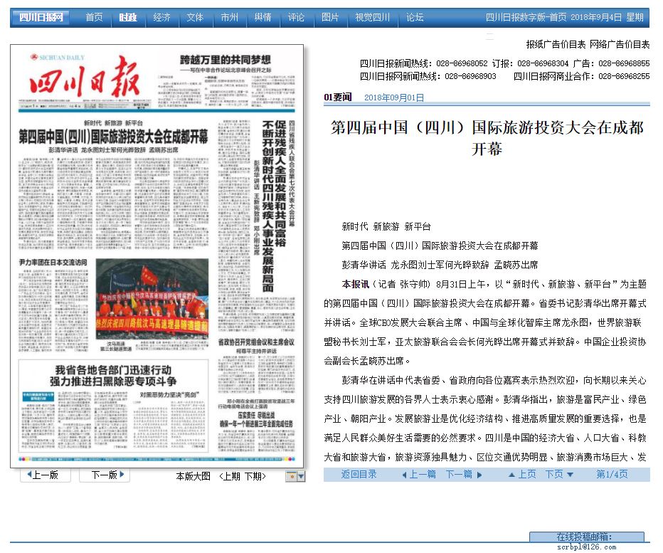 第四屆中國(四川)國際旅游投資大會在成都開幕