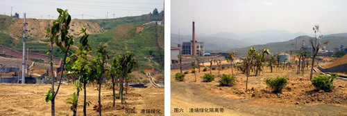 投資2.28萬元,在渣場周邊種植橡皮樹120余棵、高山榕100余棵、黃蓮翹300余株,撒播黑梅草草籽20㎏,形成約6米寬的隔離帶。