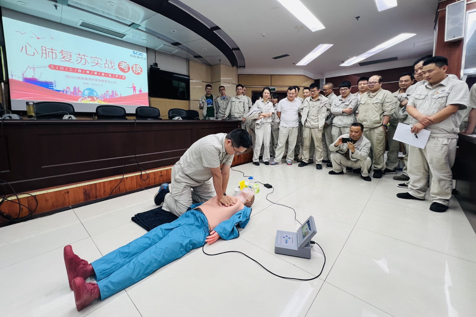 為持續(xù)深入開展2024年“安全生產(chǎn)月”活動(dòng),檢驗(yàn)全員應(yīng)急能力提升實(shí)操培訓(xùn)效果,田灣河公司于6月20日、22日、28日,在成都遠(yuǎn)控、電站現(xiàn)場(chǎng)兩地開展心肺復(fù)蘇(CPR)技能實(shí)戰(zhàn)考核。