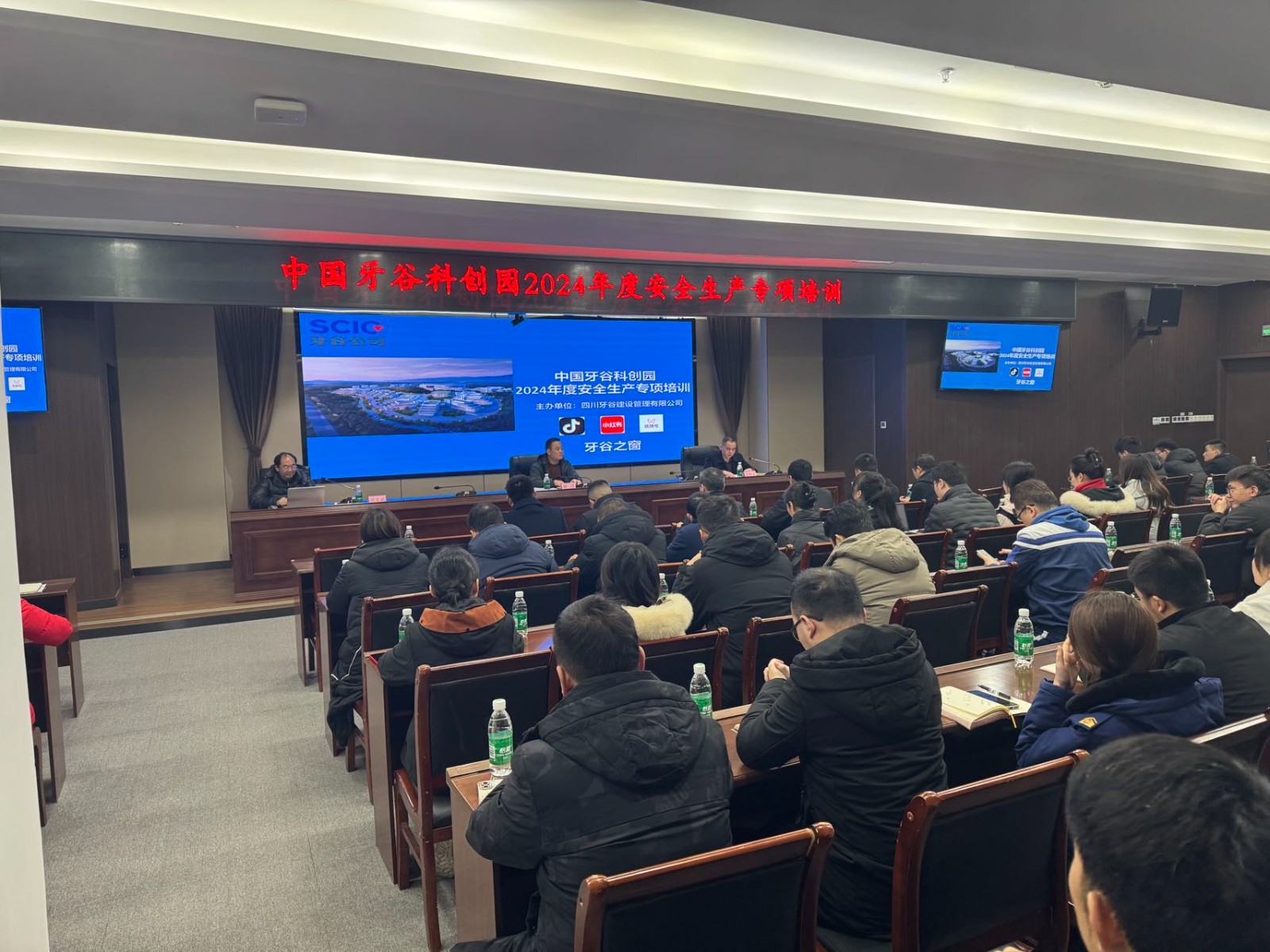 牙谷公司全體員工,園區(qū)物業(yè)、施工及維保單位相關(guān)負(fù)責(zé)人、資陽市高新區(qū)管委會(huì)各職能部門代表、園區(qū)入駐企業(yè)代表等60余人參加培訓(xùn)。