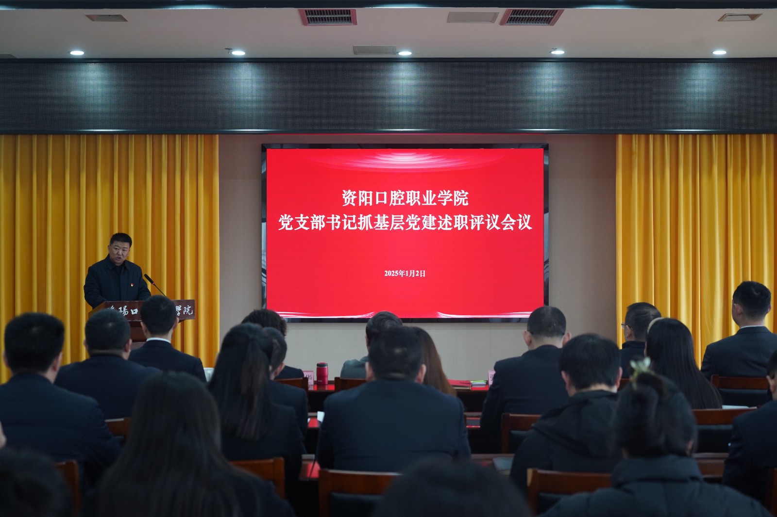 1月2日上午,資陽(yáng)口腔職業(yè)學(xué)院召開(kāi)2024年度黨支部書(shū)記抓基層黨建述職評(píng)議會(huì)議。學(xué)院領(lǐng)導(dǎo)班子成員、中層干部、各黨支部書(shū)記、支部委員及黨員代表參加會(huì)議。