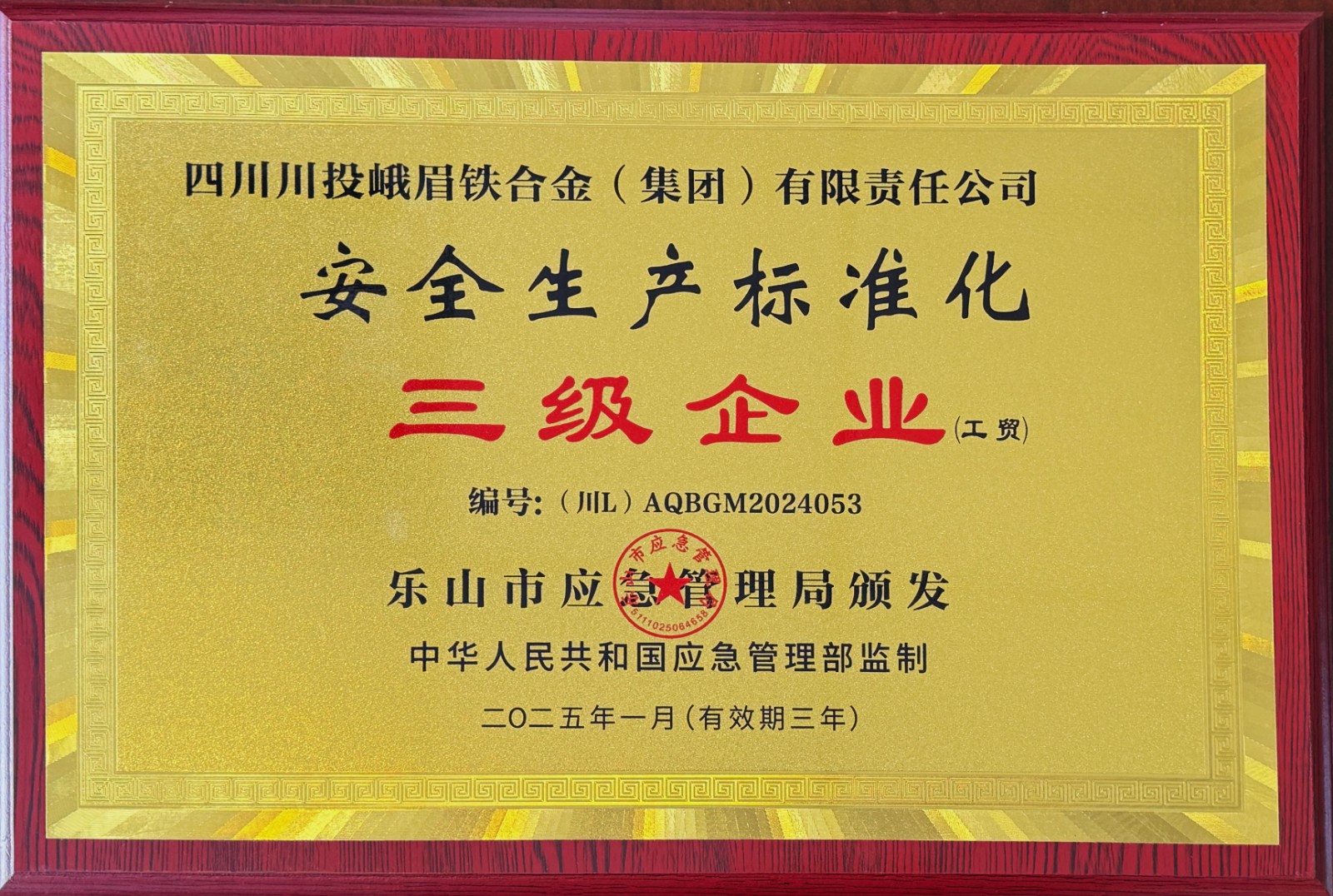 【川投峨鐵】公司獲評樂山市“工貿(mào)行業(yè)安全生產(chǎn)標(biāo)準(zhǔn)化三級企業(yè)”