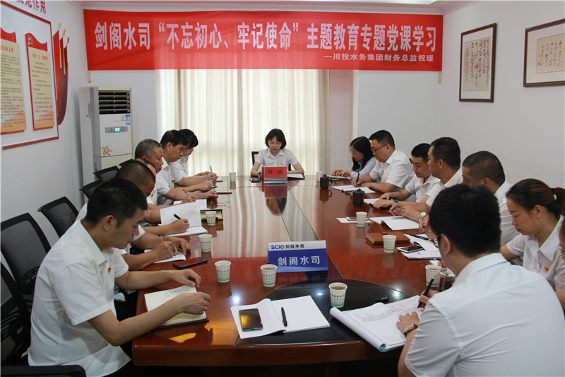 8月21日,川投水務(wù)集團(tuán)財務(wù)總監(jiān)祝瑗以“忠誠黨的事業(yè)、不忘初心情懷、竭誠服務(wù)社會、牢記使命擔(dān)當(dāng)”為題,為劍閣水司全體黨員講授“不忘初心、牢記使命”主題教育專題黨課。
