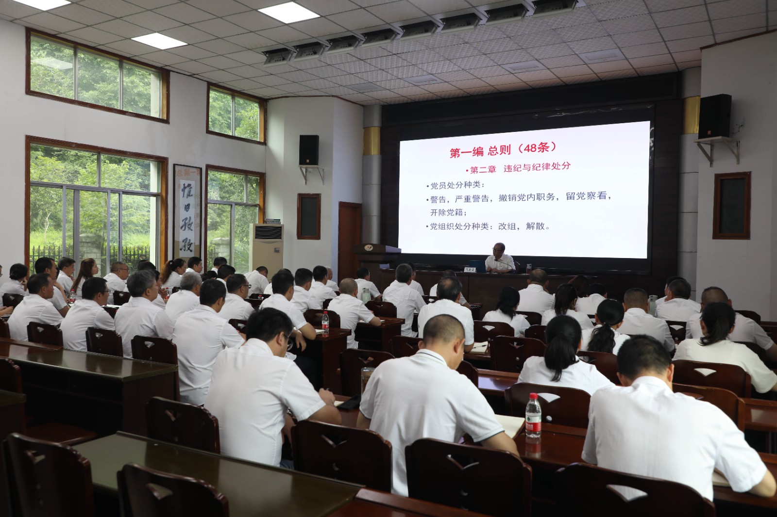 7月4日,嘉陽集團(tuán)黨委副書記、總經(jīng)理范勤英作《嚴(yán)肅黨規(guī)黨紀(jì),促進(jìn)高質(zhì)量發(fā)展》專題黨課宣講,機(jī)關(guān)第三黨支部、川投峨旅黨總支及所聯(lián)系隊(duì)站黨支部共60余人聆聽了宣講。