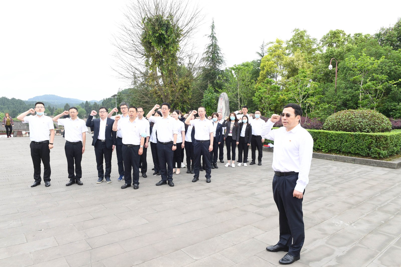 在陳毅元帥雕像前,王懷林同志帶領(lǐng)全體黨員面向黨旗,緊握右拳,鏗鏘有力、莊嚴(yán)神圣地重溫入黨誓詞,追憶了入黨時(shí)對(duì)黨和人民許下的莊嚴(yán)承諾。