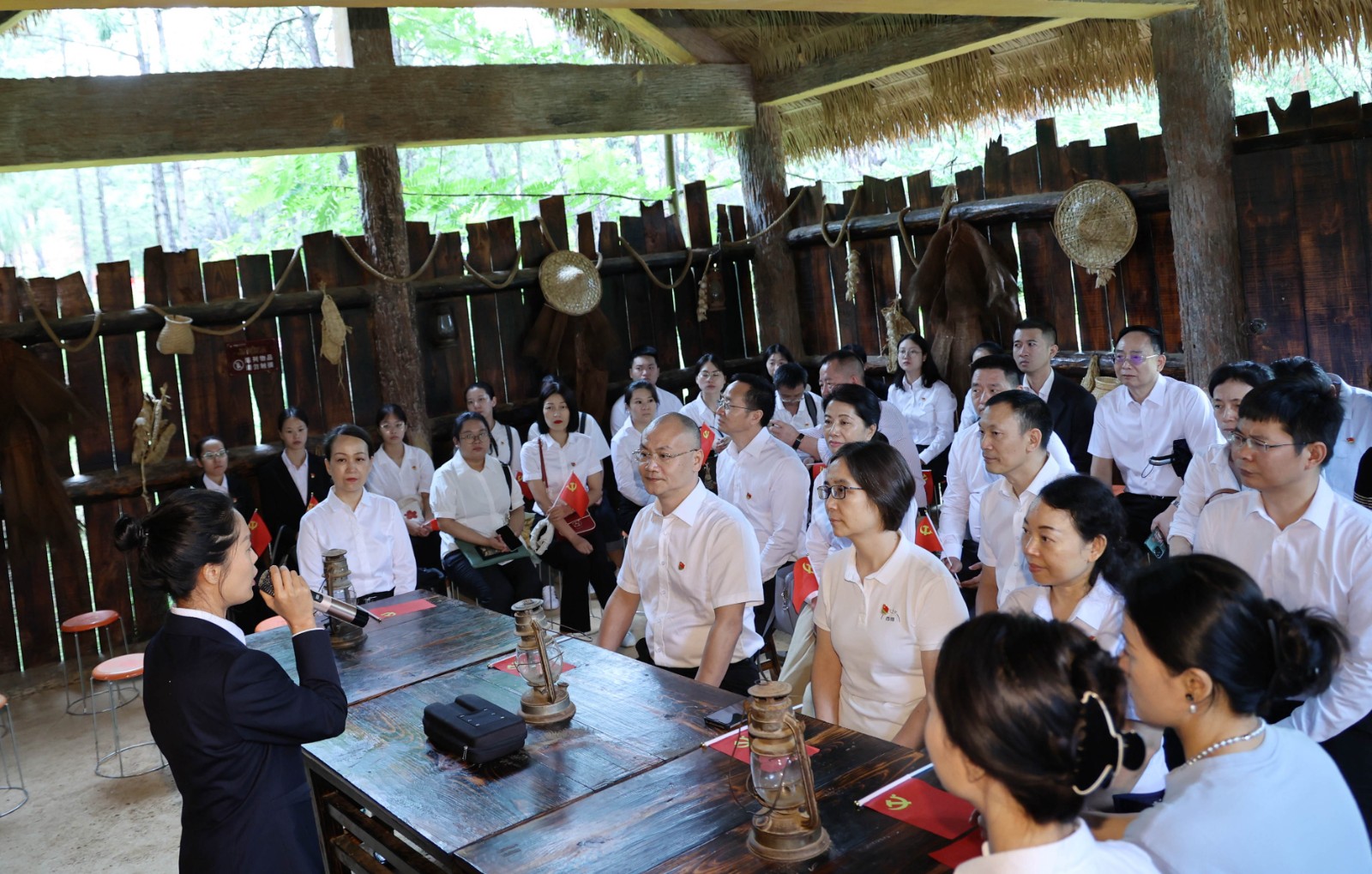 全體黨員走進(jìn)會(huì)理會(huì)議遺址,瞻仰了先烈們的豐功偉績(jī),在領(lǐng)誓人帶領(lǐng)下,大家一起高舉右手,面對(duì)鮮紅的黨旗,再次莊嚴(yán)宣誓:“我志愿加入中國(guó)共產(chǎn)黨……隨時(shí)準(zhǔn)備為黨和人民犧牲一切,永不叛黨?!辩H鏘的誓詞,震撼著在場(chǎng)的每一位黨員,一字一句,神圣豪邁。會(huì)理市委黨校鐵迫春老師以“金沙水拍云崖暖,大渡橋橫鐵索寒”為題,給大家生動(dòng)系統(tǒng)地講述了中央紅軍長(zhǎng)征巧渡金沙江過(guò)會(huì)理的動(dòng)人故事和艱辛歷程,并展示了共產(chǎn)黨長(zhǎng)征時(shí)期百折不撓、英勇殺敵、由弱到強(qiáng)的光輝歷史。